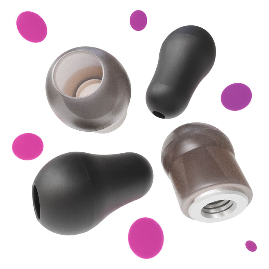 We offer 2 types of Ear Tips: Push-On(black, left) and Screw-On (grey, right). The stainless steel binaurals of our current tubing sets are threaded to receive the screw-on variety but we were careful to ensure that the threading and the outer diameter would sufficiently allow the legacy push-on style to securely grip and seal as well so that you have 2 options for comfort and fit. If you are having trouble unscrewing your screw-On type ear tips, you can remove the grey PVC cover and grasp the internal metal cap with a pair of pliers or a jar opener to help break the seal.